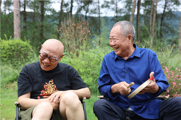 音樂人李杰(左)和紫陽(yáng)民歌省級(jí)傳承人何耀信(右)