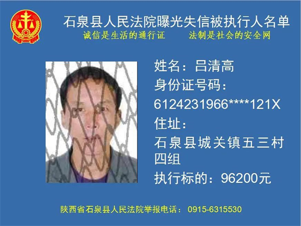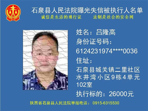 曝光失信 | 石泉縣人民法院曝光失信被執(zhí)行人名單。2022年第五期)