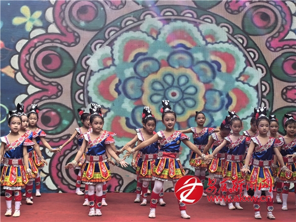 鼓樓小學(xué)的學(xué)生們表演的舞蹈《苗娃踏歌迎國慶》,以朝氣蓬勃的舞姿和天真爛漫的笑臉,踩著歡快的節(jié)拍,表達了少年兒童對祖國生日最可愛的祝福,展現(xiàn)了新時代安康少年積極向上的精神風貌。