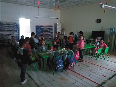 因?yàn)橥k姡⒆觽冎荒茉诠饩昏暗的教室內(nèi)活動(dòng)。 記者 龔偉芳 攝
