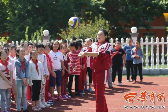 昨日上午11時許,華商報記者在長安師范附屬小學的操場上看到正上體育課的楊肖文欣,她站在班級最前列,同學大部分只有她肩膀高。