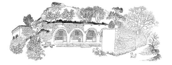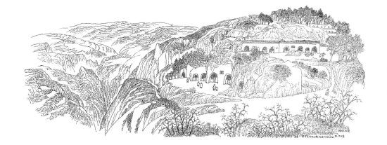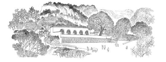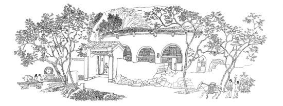 陜北革命舊址寫生,面對復(fù)雜的景物,須瞬間分析,即刻做出判斷、選擇、取舍、構(gòu)圖,抓住整體、突出特點(diǎn),果斷下筆。以線寫生,務(wù)求準(zhǔn)確,落筆后,線不可重復(fù),也無法修改。寫生時(shí),常常左手打傘,天熱時(shí)遮陽光,每當(dāng)大汗淋漓,也顧不上擦;下雨時(shí),盡量用傘遮住畫紙,堅(jiān)持畫完,即便衣服濕透也無所謂。如果對寫生作品不滿意時(shí),就重新赴舊址寫生,僅涇陽縣云陽革命舊址,他就去過4次,清澗縣石嘴驛去了3次,直到畫好為止。