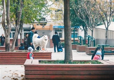 11月7日下午,記者分別來到這兩個(gè)小區(qū)進(jìn)行走訪。在鳳棲西路寧東林業(yè)局家屬院看到,下午六點(diǎn)多的小區(qū)小廣場(chǎng)上,不少居民在健身鍛煉,還有不少居民帶著小孩子活動(dòng)。突然有一只白色的大型犬竄入人群四處亂竄,一時(shí)間不少居民嚇得紛紛抱起孩子躲避。另外小廣場(chǎng)地上,不時(shí)能看到狗的糞便。