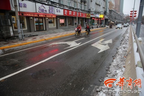 1月7日,在西安市咸寧路上,在寶馬車打滑的路段上,早上下雪后,下午已經看不到積雪。 華商記者 鄧小衛(wèi) 攝影報道