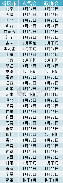 2018年省級(jí)地方兩會(huì)1月密集召開(kāi) 扎堆于第四周