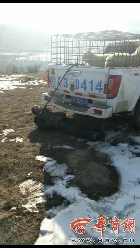 近日,一段視頻在榆林傳播,視頻中,3名年輕男子各抓著一只羊,一輛車(chē)牌照為陜K3D×××的執(zhí)法車(chē)停在一旁,車(chē)后的防護(hù)網(wǎng)中關(guān)著幾只羊,車(chē)尾有一男子平躺在地,一條繩索一頭套在他的脖子上,另一頭系在車(chē)的防護(hù)網(wǎng)上,車(chē)旁還有一名婦女跪在地上求請(qǐng)。婦女稱(chēng),草都在山溝里……他們實(shí)在沒(méi)辦法才這樣,有辦法的話(huà)就圈養(yǎng)起來(lái)喂了……