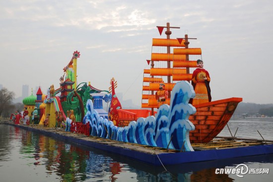 1月22日,記者走進(jìn)大唐芙蓉園,環(huán)芙蓉湖一圈,見2018新春燈會(huì)的大型燈組已基本到位,規(guī)模氣勢超大唐芙蓉園歷屆燈會(huì)。這組水上燈組濃縮了水陸絲綢之路風(fēng)情。y89安康新聞網(wǎng)