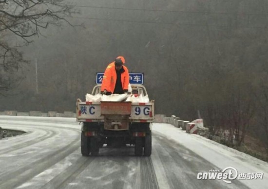 寶雞降雪,212省道對四軸以上貨車實(shí)行交通管制。