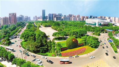 南二環(huán)道路中央?yún)^(qū)域鮮花盛開(kāi),綠草茵茵。 記者 謝偉 攝