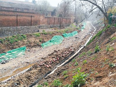 記者一行從位于臨潼建業(yè)家園小區(qū)南面的大秦建材批發(fā)市場直往北走,發(fā)現去年墻外的一片垃圾和臭水已經不見了蹤影。之前排水管排出的臭水裸露在地面,臭水溝兩旁堆滿了生活垃圾,如今排水管口和長長的水泥管道連接在一起,排出的污水順著水泥管道直接從地下流走,已經看不到污水的影子,也聞不見臭味,只聽到水泥管道里傳出嘩啦啦的水聲。兩邊的垃圾明顯被鏟車清運了,現場還留下鏟車鏟過的痕跡。水泥管道的一大半已經被埋在地下。