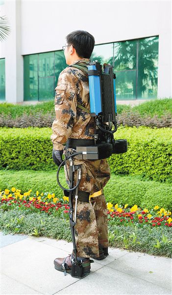 “穿戴式外骨骼助力機器人,是一款智能仿生、單人操作的軍民兩用多功能攜行助力系統(tǒng)。”莫新民告訴記者。從外觀來看,它就像套在人體外面的一件強壯、靈活的“鋼鐵外衣”;穿上后,在人的雙腿外側就會增加一副機械腿,把背部的大部分負重傳遞到地面,同時人的運動靈活性也不會受到太大的影響——負重50kg的行進速度能達到每小時4公里,與普通人正常走路的速度差不多。直白地說,新技術就是讓人可以“舉重若輕、健步如飛”。此外,它還能適應1.6m—1.9m的身高范圍,可連續(xù)工作4小時。穿戴也比較方便:自己穿需要約2分鐘,有人輔助40秒就能穿好,脫卸只需要30秒,并可折疊運輸。