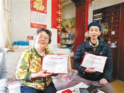 徐斌夫婦拿到榮譽(yù)證書(shū)后合影留念