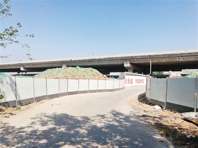 繼續(xù)向東行駛至灃明路和108國(guó)道交界處時(shí),高速橋下的區(qū)域都被用圍墻遮擋起來(lái),行至一條朝南延伸的小路口,記者才看到了圍墻背后的“真實(shí)面目”——這里已經(jīng)赫然建起了幾家鋼材加工廠,廠區(qū)門(mén)口的橋洞下橫七豎八地停了近10輛車(chē),走近鋼材廠門(mén)口向內(nèi)望去,各種H形鋼材、鋼筋、鋼管就堆放在橋墩旁,吊裝鋼材的大型行車(chē)就安裝在“保護(hù)橋梁人人有責(zé)”的標(biāo)語(yǔ)旁,行車(chē)的橫梁已經(jīng)幾乎頂?shù)搅藰虻。廠區(qū)里焊接的噪聲此起彼伏,顯然生意不錯(cuò)。在西側(cè)的一個(gè)圍墻缺口處,還掛著“場(chǎng)地招租”的標(biāo)牌,上面寫(xiě)著“交通便利,水電齊全”的宣傳語(yǔ),還在招徠更多加工廠落戶。