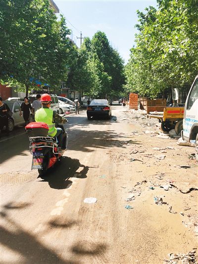 除了擁堵外,臟亂問題更是讓大家煩心。記者看到,在體育館東路北段的西側(cè),建筑垃圾、磚塊堆、塑料袋和廢棄材料等隨處可見、任意堆積,人行道已不復(fù)存在。一工地內(nèi)渣土與水混合在一起,使這條路泥濘不堪,空氣中也彌漫著嗆人的塵土味道,有的居民出行戴了口罩!斑@個工地在這里一個多月了,垃圾、泥土、揚(yáng)塵到處都是,灑過水后路上又變得泥濘,統(tǒng)共一百來米的路,大路走不成,人行道被霸占。”家住碑林區(qū)工商局家屬樓的魏師傅推著嬰兒車,正在小心翼翼地邊走邊看,以躲避過往車輛。