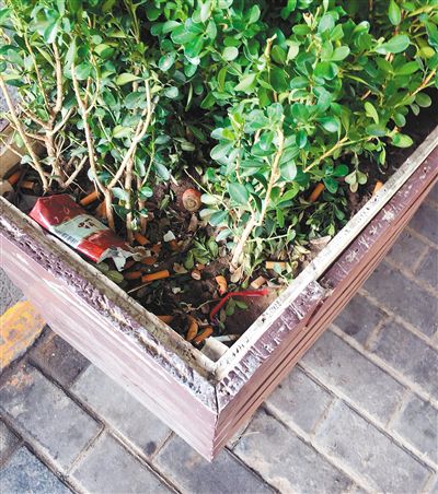 街道兩邊每隔幾米都放置一個(gè)花壇,開(kāi)得嬌艷的花兒將城市裝點(diǎn)得更加迷人。然而,在太白南路部分路段的花壇里,布滿(mǎn)了丟棄的煙蒂、衛(wèi)生紙、果皮等雜物,成了“垃圾桶”,影響了花壇的美觀、整潔。
