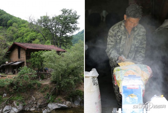 5月9日,漢中佛坪岳壩鎮(zhèn)獅子壩村,60歲的方如生在老房子里磨玉米粉,細細的玉米粉塵飄著,染白了他的臉和頭發(fā)。