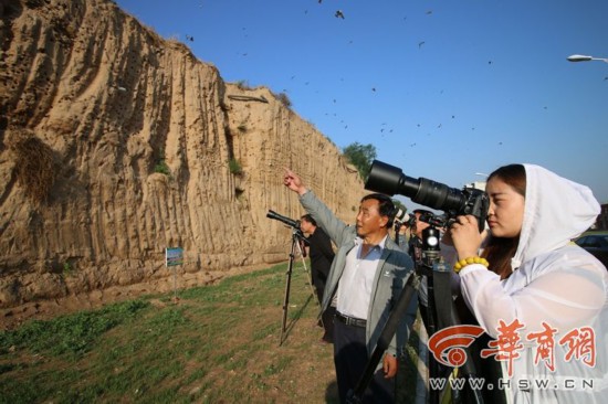 當(dāng)?shù)鼐用駝⑸n峰是一名攝影愛好者。今年4月,他從朋友圈得知石川河南岸有崖沙燕!爱(dāng)時我就和幾個攝友一起來看,并決定邀請更多的攝影愛好者一起來拍攝!彼f,從4月至今,他們已經(jīng)多次到這里拍攝。