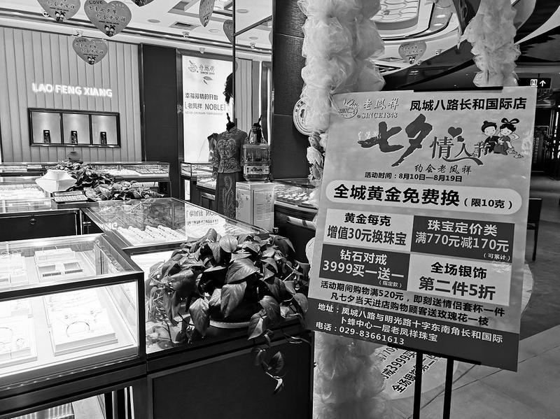 8月11日中午正逢周末,記者來(lái)到人氣極高的小寨賽格,在珠寶黃金專柜,發(fā)現(xiàn)很多珠寶品牌都趁機(jī)推出七夕活動(dòng),不少消費(fèi)者正在詢價(jià)。今年27歲的趙女士說,她和男友剛剛訂婚,準(zhǔn)備看看首飾,為婚禮準(zhǔn)備,這段時(shí)間恰好遇到七夕節(jié)活動(dòng),如果優(yōu)惠合適的話,她們就打算購(gòu)買了。