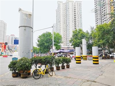 “太不美觀了,這些灰色的橋墩很難看,在人行道中間也擋路,友誼路和太白路分別是東西和南北方向的主干道,人流量也很大,上下班高峰行人多時(shí),它們特別礙事。其實(shí)拆掉是最好的選擇,路面還能再開闊一點(diǎn)!崩钆空f(shuō),這些橋墩原本灰色的柱體表面漆皮紛紛脫落,斑駁不堪,一到夜間視線不好,經(jīng)常有行人走著走著就撞了上去,存在很大的安全隱患。因此,近期橋墩下部被刷上了黑黃相間的警示標(biāo)志。