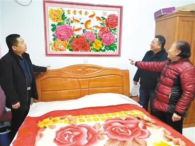 圖為貧困戶高玉英帶領(lǐng)駐村幫扶干部和村干部參觀危房改造后的新家。