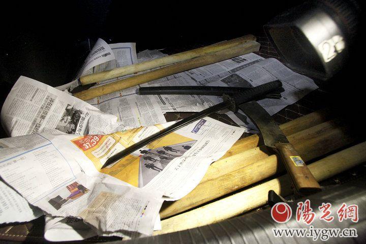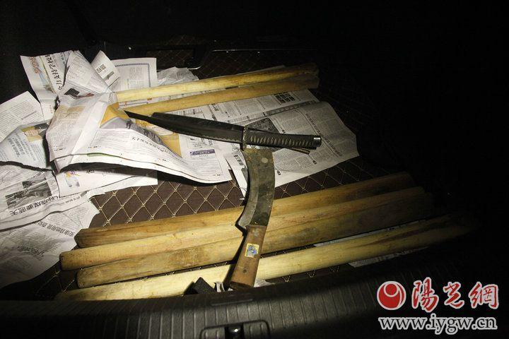 一輛無牌車后備箱藏有管制刀具。