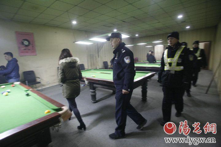 民警在一家臺球廳進行檢查。