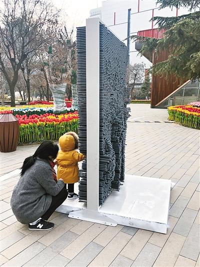 根據(jù)伍先生反映的情況,24日上午,記者來到位于高新區(qū)的創(chuàng)業(yè)咖啡街區(qū),在街區(qū)北側(cè)廣場上,記者看到伍先生提到的4座三維人體百變針雕。整個(gè)針雕是一個(gè)類似大相框的鐵架子,中間放置了上千根塑料材質(zhì)的針管。人只要向這些針管靠進(jìn)去,對面就會印出一個(gè)立體的人形,非常有趣。然而記者注意到,雖然每個(gè)大鐵框下方預(yù)留有螺絲孔,但卻沒有進(jìn)行固定。現(xiàn)場,不時(shí)有孩子和市民好奇地在上面玩耍。