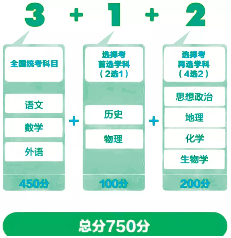 按照已實(shí)行省份的模式看,新高考“3+1+2”模式卷面滿分為750分。
