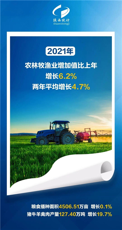 農(nóng)業(yè)生產(chǎn)穩(wěn)定,2021年,全省農(nóng)林牧漁業(yè)增加值同比增長6.2%,兩年平均增長4.7%;糧食播種面積4506.51萬畝,同比增長0.1%;蔬菜及食用菌產(chǎn)量2012.82萬噸,同比增長2.8%;園林水果1896.46萬噸,同比增長4.9%;豬牛羊禽肉產(chǎn)量127.40萬噸,同比增長19.7%。
