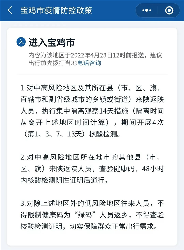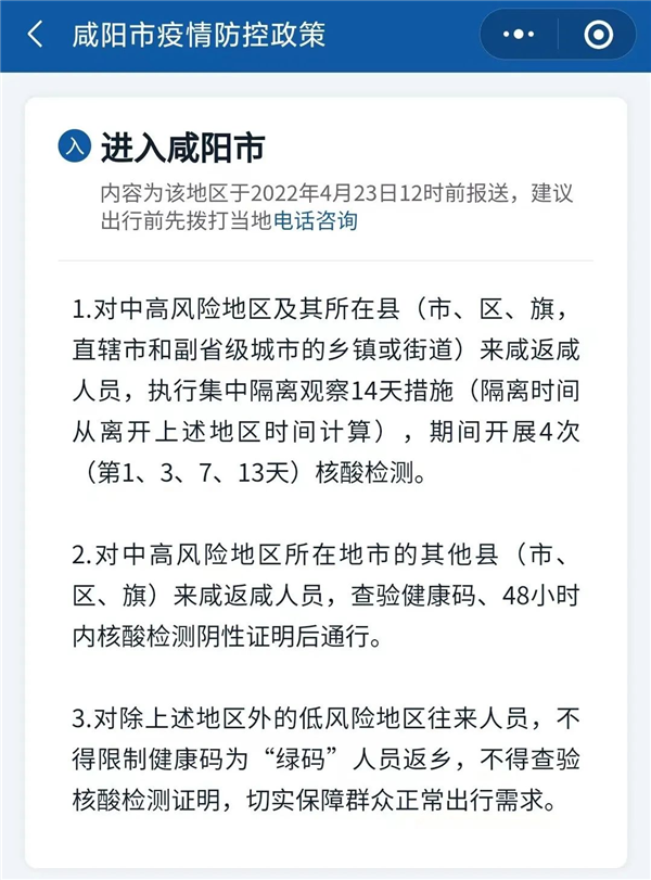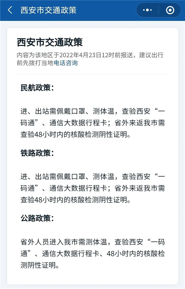 陜西省內(nèi)各市最新的疫情防控政策來了。ń刂4月23日)建議出行先撥打當(dāng)?shù)仉娫捵稍儯?/strong>M2Z安康新聞網(wǎng)