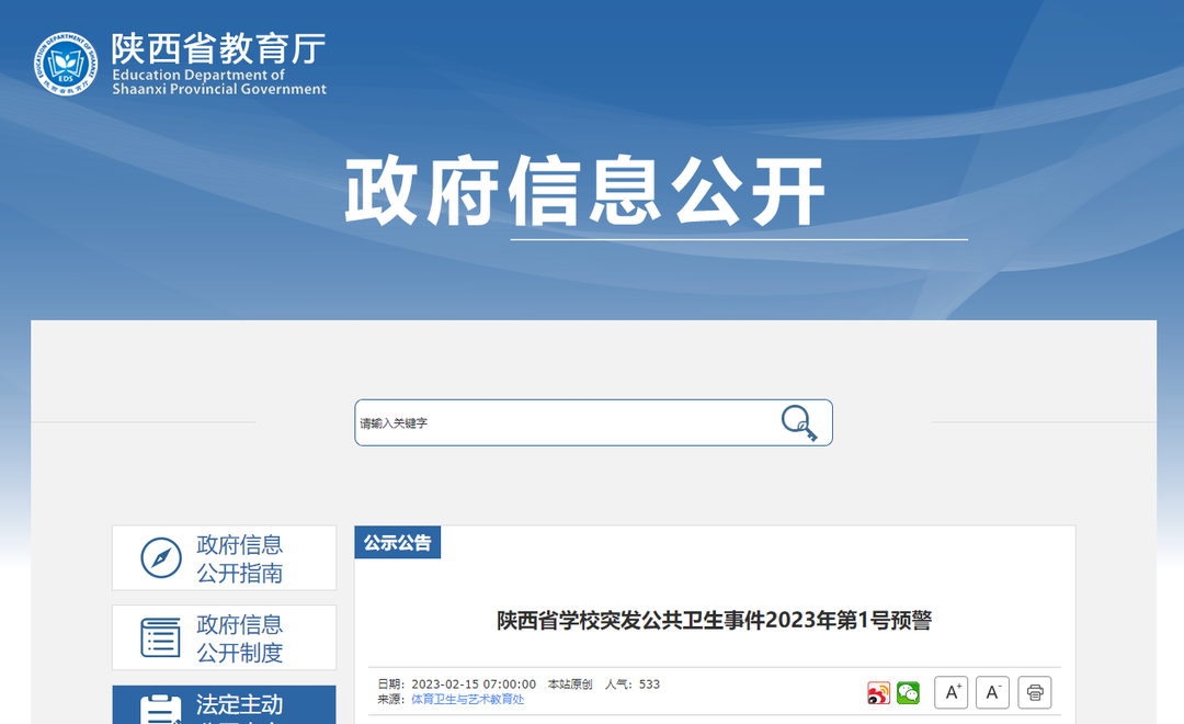 建議:各級各類學(xué)校要嚴(yán)格按照陜西省新冠病毒防控工作實施方案,做好疫情防控工作,一旦校內(nèi)發(fā)生聚集性病例時,要及時早報告并采取有效措施。