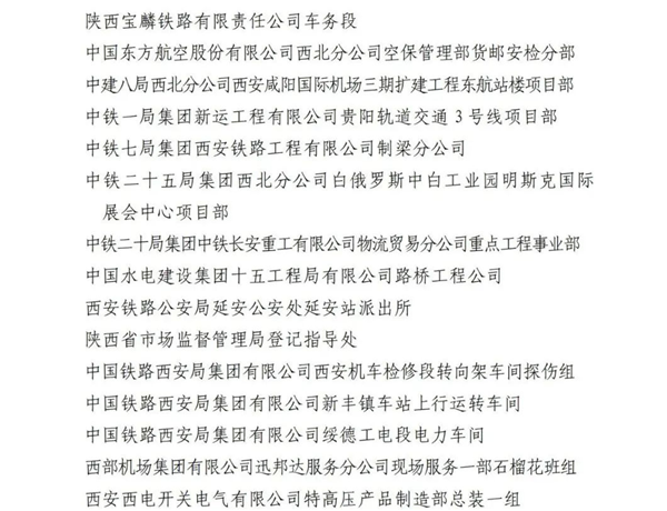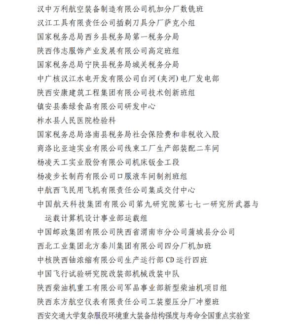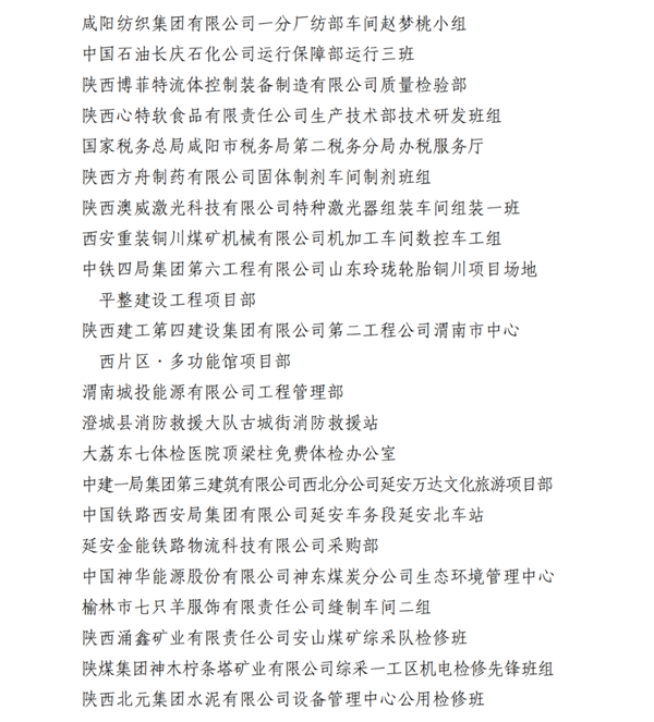 2023年陜西省工人先鋒號名單