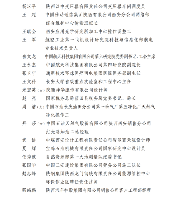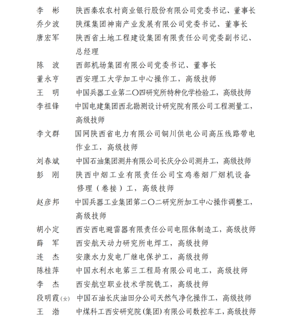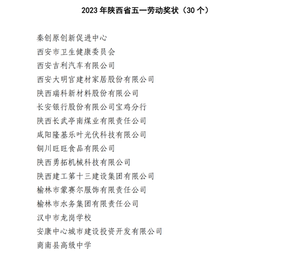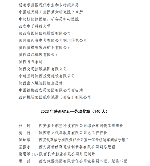 2023年陜西省五一勞動獎名單