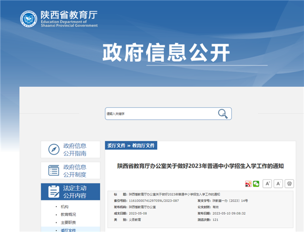 5月10日,陜西省教育廳發(fā)布關于做好2023年普通中小學招生入學工作的通知,具體內容如下: