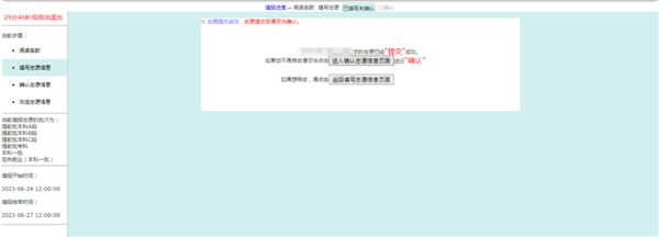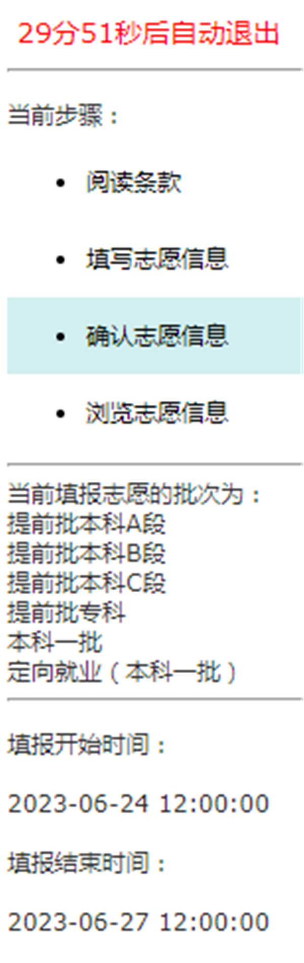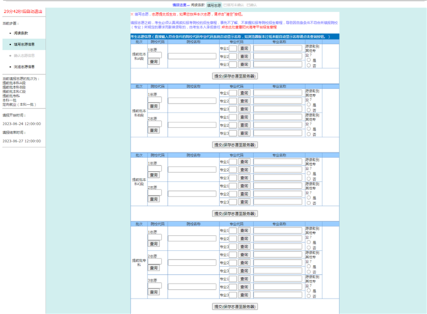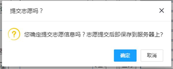 全部志愿信息輸入完畢后,必須點(diǎn)擊“提交”按鈕,否則服務(wù)器無法接收到志愿信息。全部志愿確定無誤后,必須點(diǎn)擊“確認(rèn)”按鈕。在點(diǎn)擊“確認(rèn)”按鈕之前,可以任意修改所填志愿。