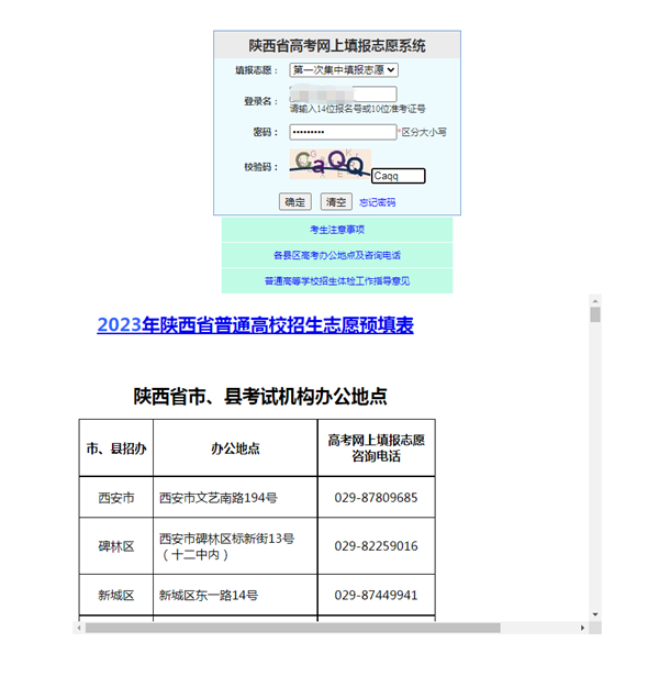 1.考生憑網(wǎng)上報(bào)名時(shí)所用報(bào)名號(14位)或準(zhǔn)考證號(10位)及密碼登錄網(wǎng)上填報(bào)志愿系統(tǒng),網(wǎng)址為陜西省教育考試院門戶網(wǎng)站(https://www.sneea.cn)或陜西招生考試信息網(wǎng)(https://www.sneac.com)。