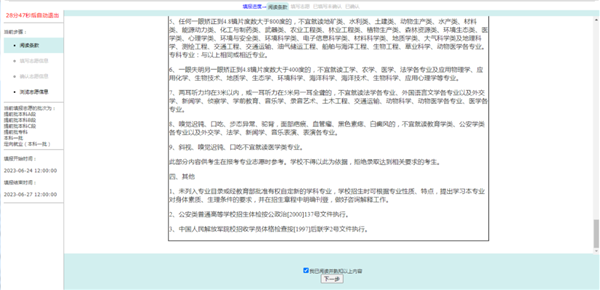 2.認(rèn)真閱讀《2023年陜西省高考網(wǎng)上填報(bào)志愿說明》,選擇“我已閱讀并熟知以上內(nèi)容”,并點(diǎn)擊“下一步”。