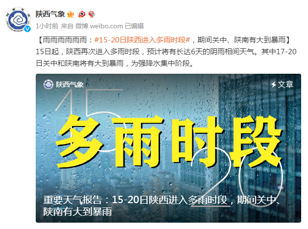 15-20日我省進(jìn)入多雨時(shí)段,17-20日關(guān)中、陜南有大到暴雨y8U安康新聞網(wǎng)