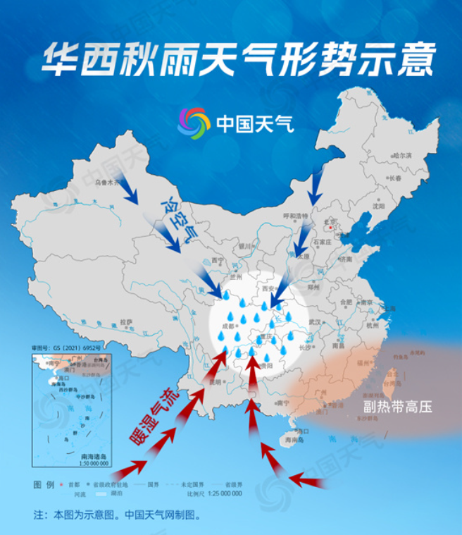 華西秋雨是我國(guó)華西地區(qū)秋季(9-11月)特有的天氣現(xiàn)象。秋季,頻繁南下的冷空氣與暖濕空氣在該地區(qū)相遇,使鋒面活動(dòng)加劇而產(chǎn)生較長(zhǎng)時(shí)間的陰雨天氣。主要影響區(qū)域?yàn)樗拇、重慶、貴州、寧夏南部、甘肅東部和南部、陜西南部及湖南西部、湖北西部等地。y8U安康新聞網(wǎng)