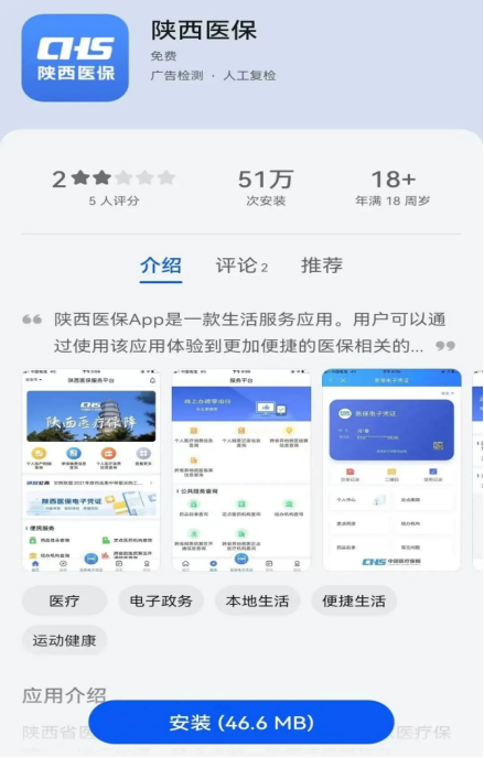 (1)手機(jī)應(yīng)用商店搜索下載“陜西醫(yī)保APP”
