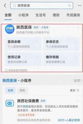 (2)小程序:微信/支付寶搜索陜西醫(yī)保小程序