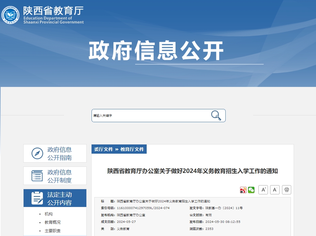 陜西省教育廳辦公室關于做好2024年義務教育招生入學工作的通知zku安康新聞網