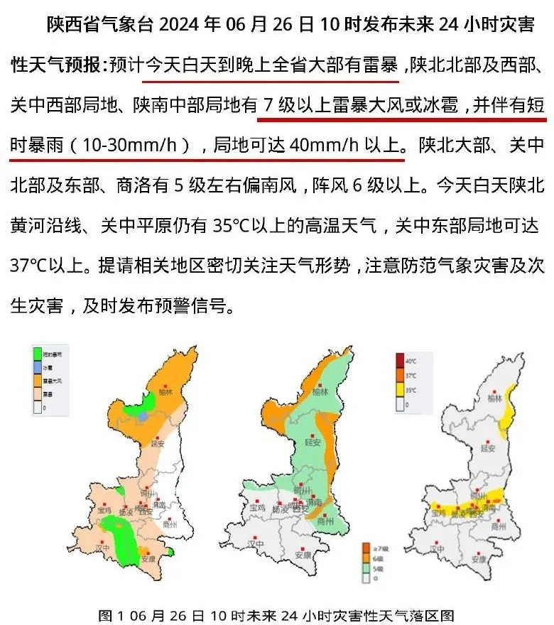 陜北大部、關(guān)中北部及東部、商洛有5級左右偏南風,陣風6級以上。今天白天陜北黃河沿線、關(guān)中平原仍有35℃以上的高溫天氣,關(guān)中東部局地可達37℃以上。提請相關(guān)地區(qū)密切關(guān)注天氣形勢,注意防范氣象災(zāi)害及次生災(zāi)害,及時發(fā)布預(yù)警信號。