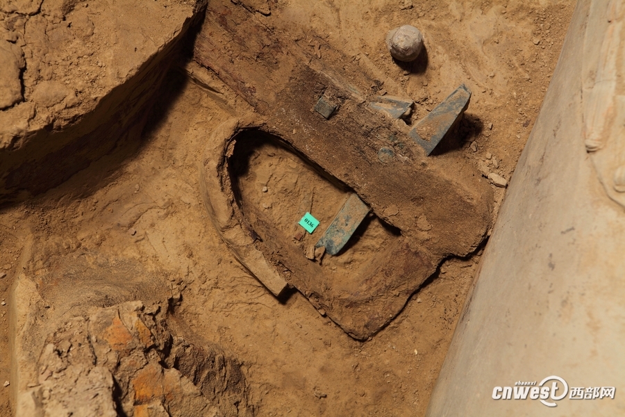 秦俑考古首現(xiàn)完整弓弩 弓弦清晰可見(jiàn)
