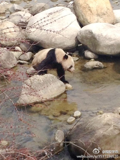 大熊貓受到驚嚇徘徊在河邊。(圖片來(lái)源于網(wǎng)絡(luò))