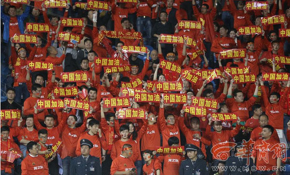 球迷為國足助威(資料圖片) 記者 王健 攝國足世預賽12強戰(zhàn)申辦城市報名工作將于今天17時截止,目前報名的城市非常多,陜西方面已經(jīng)確定申辦國足的前三個主場……