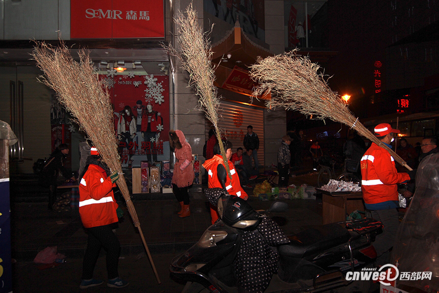 環(huán)衛(wèi)工人連夜出動,徹底掃完或到天亮。西部網(wǎng)訊(記者 趙昊 實(shí)習(xí)記者 劉望) 平安夜結(jié)束以后,稍早前人流密集的鐘樓、東大街、騾馬市步行街等處,地上殘留的垃圾……