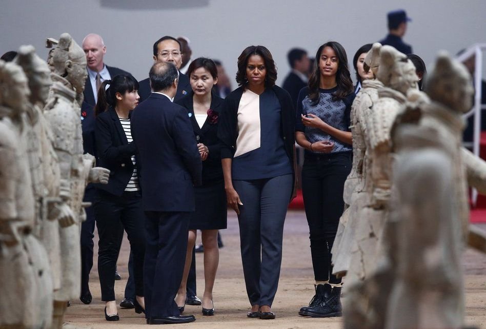 2014年3月24日,西安,美國“第一夫人”米歇爾抵達西安,根據(jù)行程安排,他們一行將參觀秦始皇兵馬俑并登上城墻,感受千年古都的魅力!