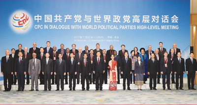 2017年11月30日,中國共產(chǎn)黨與世界政黨高層對話會在北京召開。12月1日,習(xí)近平總書記在會上發(fā)表講話時這樣說:中國共產(chǎn)黨愿廣交天下朋友。長期以來,中國共產(chǎn)黨同世界上160多個國家和地區(qū)的400多個政黨和政治組織保持著經(jīng)常性聯(lián)系,“朋友圈”不斷擴大。面向未來,中國共產(chǎn)黨愿同世界各國政黨加強往來,分享治黨治國經(jīng)驗,開展文明交流對話,增進(jìn)彼此戰(zhàn)略信任,同世界各國人民一道,推動構(gòu)建人類命運共同體,攜手建設(shè)更加美好的世界!