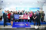 11月6日,乘坐美國航空首航北京-洛杉磯航班的乘客與美國航空的工作人員合影留念。攝影:吳美妮 人民網(wǎng)北京11月6日電 (楊鐵虎、吳美妮)在……